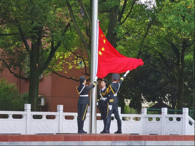 活动伊始,郭书记对全体20级本科生进行防溺水防电信诈骗的思想教育 并强调了英语四级考试的重要性。随后,辅导员万谦组织员工合唱红歌《歌唱祖国》,歌声悠扬响亮,情感饱满。紧接着,随着铿将有力的步伐,国旗护卫队在全体人员的注视中护送国旗来到国旗台,带领全体人员举行庄严肃穆的升旗仪式。仪式过后,由员工代表胡斌斌发言,其中他向去世的袁隆平致敬,并提出希望大家都能学习前辈崇高的精神与品性,成就更好的自己。发言完毕,伴随着热烈的掌声,机械公司竺书记向公司授予了“千班唱红歌,万人健康跑”旗帜。在高举飘扬旗帜的旗手的领跑下,在场员工紧随其后,完成本次健康跑活动。至此,西校区升旗仪式及“千班唱红歌,万人健康跑”活动顺利结束。