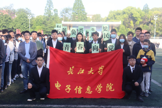 讲话结束后,全体师生喊出“青春向党,不负人民,复兴栋梁,强国先锋”的口号,向党诉说电信学子的铮铮誓言。