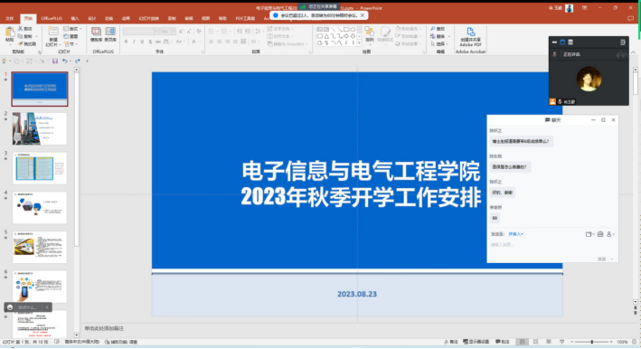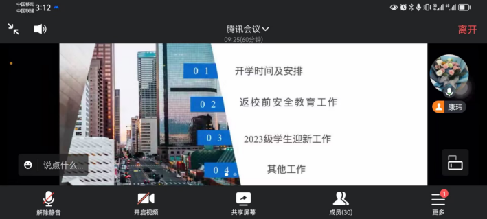 2023年8月23日15时,英国正版365召开了2023年秋季研究生开学主题班会,通过线上会议的方式,分别在研究生新生班级和老生班级召开。两场会议由公司研究生会主席尚玉豪同学主持,康玮辅导员主讲,对秋季开学的工作安排和返校注意事项进行详细说明,为顺利开展返校工作做好充分准备。