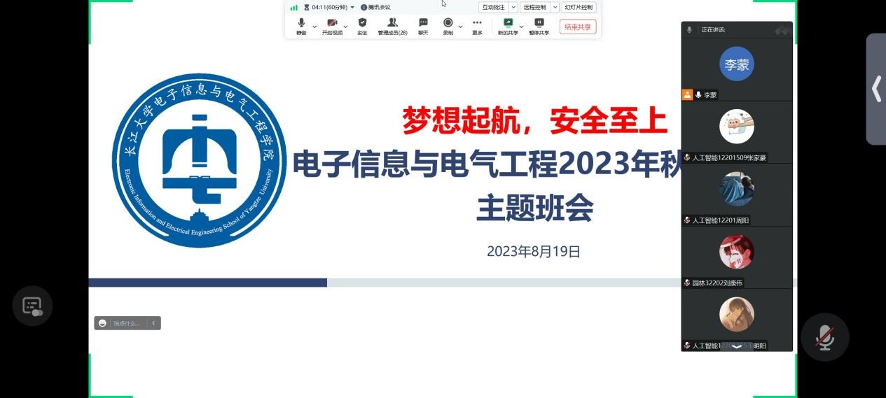 为确保秋季学期开学工作平稳有序,公司于8月21日至8月23日组织全体员工召开了“梦想起航,安全至上”线上主题班会,本次会议由各年级辅导员主持。