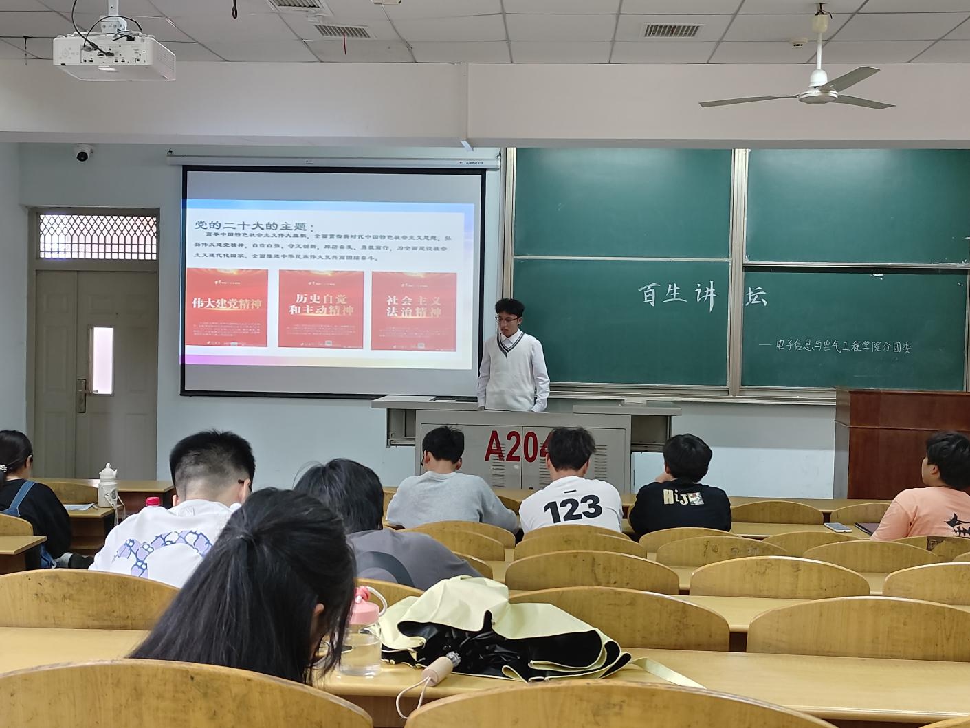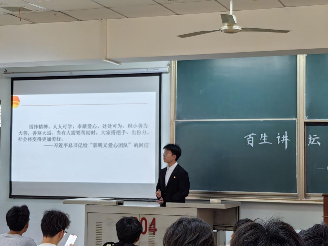 (通讯员 叶顺)为深入学习贯彻习近平总书记关于青年工作的重要思想和关于教育工作的重要论述,坚持用习近平新时代中国特色社会主义思想武装头脑、铸魂育人,公司积极落实校团委决定,于4月18日在13教A204组织开展百生讲坛活动。 本次活动,共有12名同学参加,主讲人结合PPT进行精彩演讲,由5位评委综合主讲人的申报情况、演讲内容及现场表现进行评分。依照演讲顺序,各位主讲人有序上台演讲。其中信卓12202班宋穹一同学以家乡“郭明义爱心团队”为例为我们生动展现了青年一代有理想、有担当,国家就有前途,民族就有希望,鼓励大家用实际行动为实现中国梦作出贡献,该同学以9.53分荣获本次活动一等奖;电信类12304班张欣同学以守边战士陈祥榕、运动员杨倩等为例,向我们阐述了零零后从来不是垮掉的一代,中国的年轻人永远值得被万众期待,该同学以9.45分荣获本次活动二等奖;人工智能12301班汪一轩从成就回顾、新征程的挑战与机遇、奋进新征程的战略部署、办好人民满意的教育四个部分出发,带领大家学习了党的二十大报告,她充满信心地讲述了她自己的见解,号召大家团结一致,为实现中华民族伟大复兴的中国梦不懈奋斗,最终以9.40分荣获本次活动三等奖。 本次百生讲坛活动吸引了广大团员的积极参与,主讲人们的精彩演讲展现了青年团员应有的积极上进与青春活力,同时本次活动促进了广大团员的成长与发展。未来,公司百生讲坛活动将继续推进创新,不断提高青年团队的凝聚力和向上精神。 (审核 康玮 编辑 李蒙)