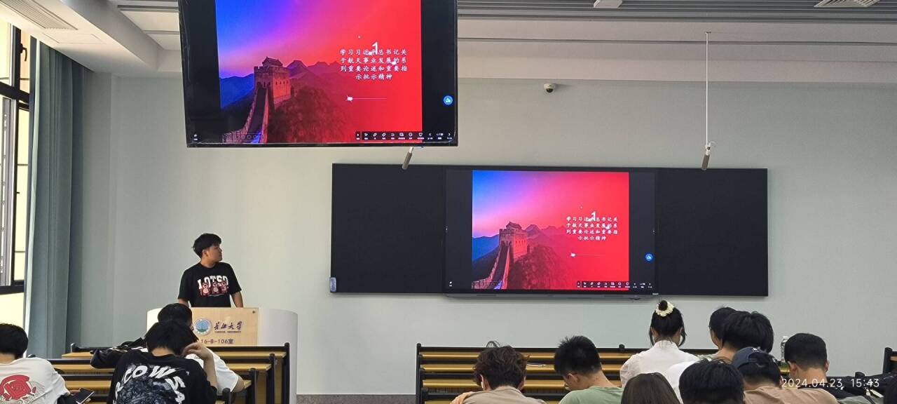 (通讯员 姚维)为深入学习宣传贯彻党的二十大精神及团十九大精神,根据团中央关于面向广大团员和青年开展学习贯彻习近平新时代中国特色社会主义思想主题教育的部署安排,英国正版365团委组织各班级召开四月主题班团会。 4月23日晚,电信类12302团支部在13教D122召开本次主题班团会。在团支书牛宇蒙的主持下,大家学习了习近平总书记关于航天事业发展的系列重要论述和指示精神。习近平总书记强调,创新是引领发展的第一动力,青少年应成为创新的主力军;会上还深入开展国家安全教育日学习活动,开展社会主义核心价值观学习宣传教育,会议最后,同学们观看了爱国主义、集体主义和社会主义教育的实践意义的短视频。 4月23日下午,人工智能12201班于16教B106室开展团日活动。团支部书记南林江带领同学们深入学习了习近平总书记关于航天事业发展的系列重要论述和指示精神,主持人鼓励大家积极参与学科竞赛,培养创新精神。最后,南林江同学向入党积极分子强调了理论学习和入党培训的重要性。 4月22日上午,电卓12201班在16教B403举行此次班团会,主持人岳斯琦带领大家学习习近平总书记关于科技创新的重要论述和指示批示精神,希望广大青年弘扬“两弹一星”精神和载人航天精神,勇于创新,在逐梦的征途上发出夺目光彩。最后,团支书强调了青年大学习网上主题团课的重要性和必要性。 学习新思想,做好接班人是我们青年人的时代使命和责任担当。习近平总书记对当代青年给予殷切期望,我们要以饱满的热情和坚定的信念投身到这一伟大事业中去,为实现中华民族伟大复兴的中国梦贡献青春力量。 (审核 康玮 编辑 李蒙)