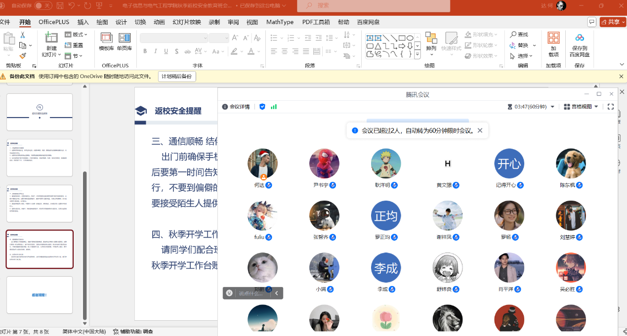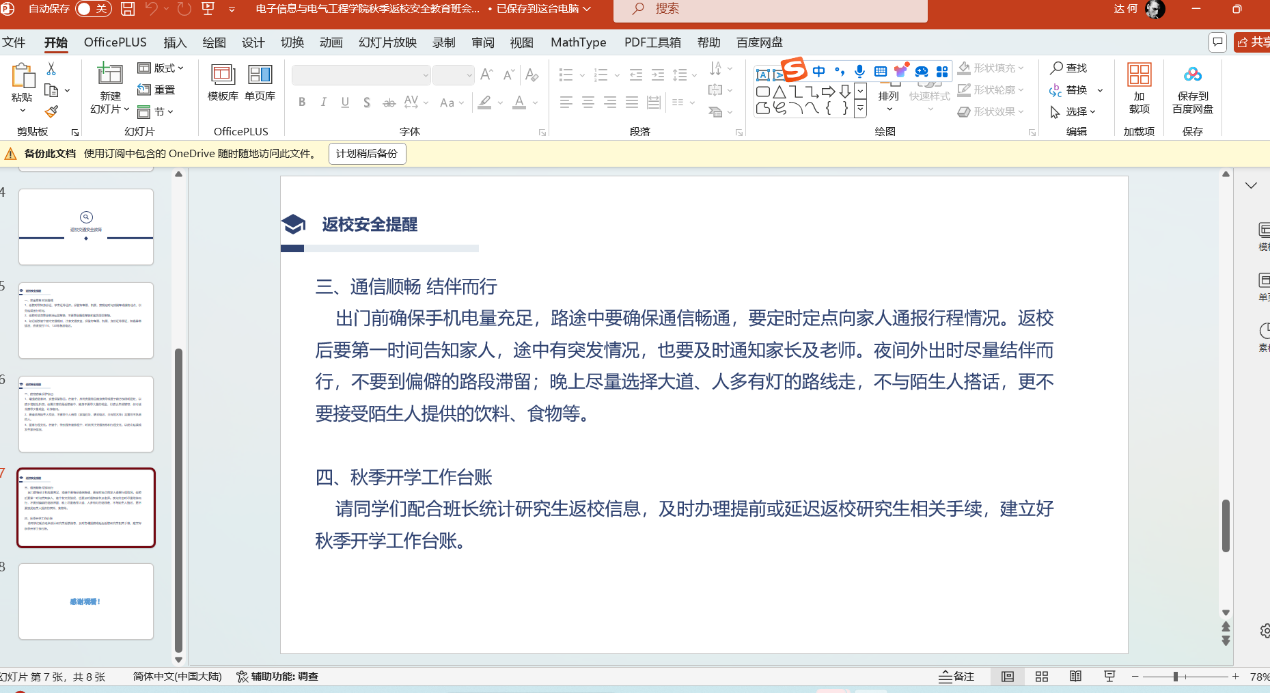 为确保公司秋季学期开学工作平稳有序,根据365英国上市党委员工工作部、党委研究生工作部《关于开展2024年秋季开学前主题班会的通知》的要求,英国正版365于2024年8月20日至8月22日期间召开了研究生的开学安全主题教育班会。 本次主题班会主要围绕新生开学线上报到流程及注意事项;员工来校前安全教育(消防、交通、人身、财产安全,防诈骗、溺水、校园欺凌、毒品等),加强网络文明建设教育;秋季开学员工报到返校要求、开学上课、补考注意事项等几个方面开展教育。 (审核 康玮 编辑 康玮)