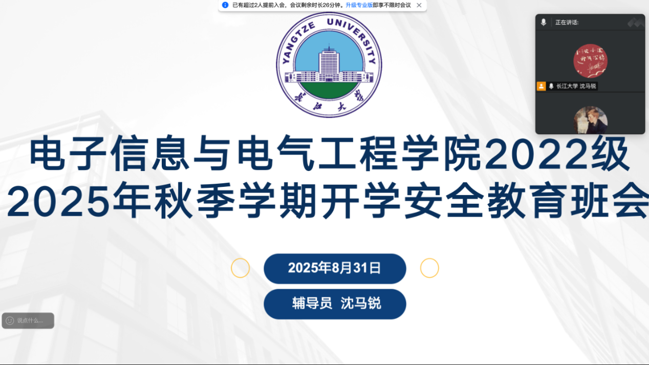 为进一步落实公司关于秋季学期开学相关工作要求,公司于9月1日至9月4日组织各班召开2025年秋季学期开学线上主题班会,年级辅导员、班主任积极参会。 主题班会主要围绕安全教育、员工学业及就业规划等方面展开。 会上,各班传达了公司关于秋季开学返校的安排,同时提醒同学们需加强健康管理。此外,班会围绕消防安全、交通安全、人身安全、财产安全、防诈骗、防溺水、网络文明建设等问题进行了细致讲解,提升同学们的安全防范能力与应急处理技巧。 最后,各年级辅导员对上学期班级工作和学业成绩进行回顾分析,教育引导同学们明确自身定位,做好学业和成长、就业规划,并鼓励同学们积极参与校园文化活动和学科竞赛,提升个人综合素质。 (审核 颜国琼 编辑 李蒙)
