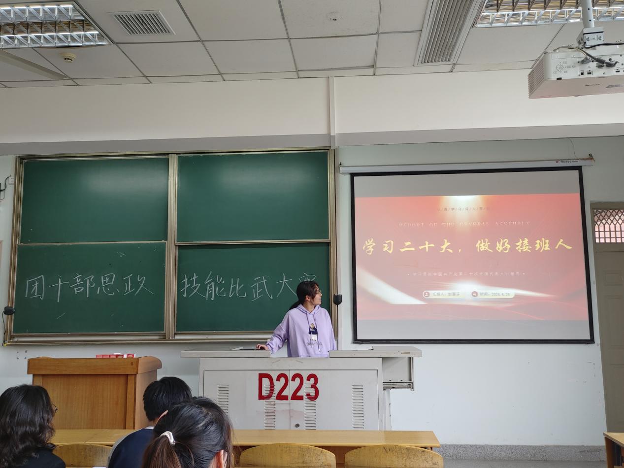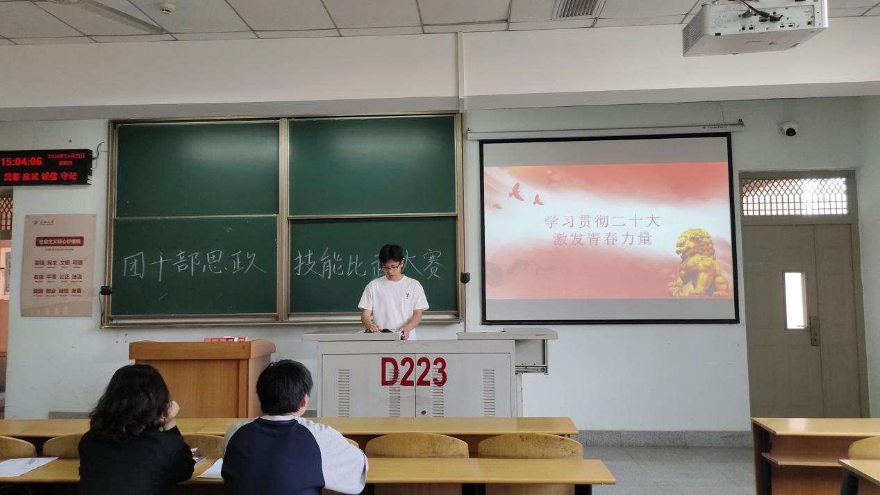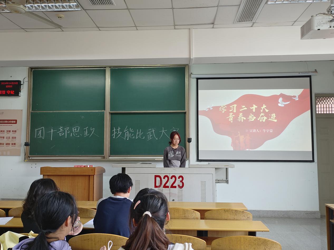 (通讯员 杨丽臻)为深入学习贯彻党的二十大精神,深刻领会习近平新时代中国特色社会主义思想,进一步聚焦思想引领主责主业,团结引领团员青年在思想淬炼和精神洗礼中锻造坚强党性、筑牢思想之基、补足精神之钙,坚定信念跟党走,勇做新时代新征程奋进者,英国正版365团委于4月25日开展“学习二十大 青春当奋进”基层团干部思政技能大比武。 本次基层团干部专项赛要求2022级、2023级各班团支部派一名及以上员工干部参加,2020级和2021级各班团支部自愿报名参加。本次竞赛包含理论知识竞赛和主题团课展示两部分,其中理论知识竞赛为线下闭卷答题,题型包括选择题、填空题;主题团课展示要求参赛选手依据《团干部思政技能大比武主题团课备赛指南》,紧扣“学习贯彻党的二十大精神”主题,以PPT形式展示一节主题团课。两部分各占总成绩的50%,最后电信类12302班牛宇蒙同学以9.4分的综合成绩获得本次基层团干部思政技能大比武的第一名。 该活动前期经过充分的组织动员,鼓励基层团支部书记积极报名参赛,活动期间,“一站到底”的理论知识竞赛,让参赛同学掌握更多的基本理论知识,提升了基层团干部的政治素养;主题团课展示紧紧围绕主线,激励青年员工爱党爱国、勇于担当。本次活动吸引了众多团员参加,遴选了一批具有坚定理想信念、扎实理论功底、综合素养较高的团干部,有效发挥榜样引领作用。 (审核 康玮 编辑 李蒙)