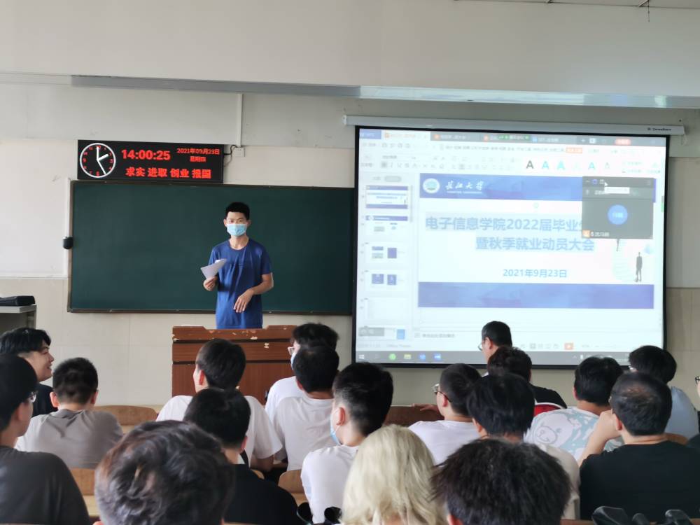 (通讯员 沈马锐 冯翛然)为扎实做好毕业生就业相关政策宣传工作,9月23日下午,公司在12教402召开就业政策宣讲暨2022届毕业生就业动员大会。公司党委副书记郭启炜,2022届毕业生辅导员王齐禄及2022届全体毕业生参加本次大会,会议由公司负责就业工作的辅导员沈马锐主持。