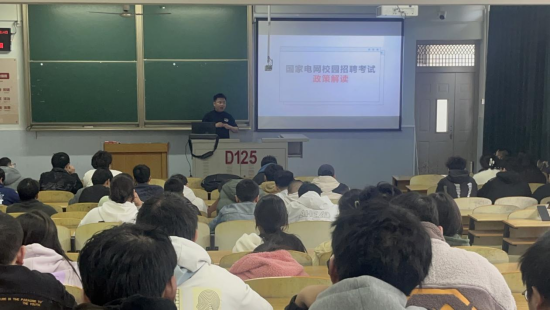 讲座中,老师就国家电网公司的发展和不同地区招考差异、岗位需求、招聘方式、发展前景等问题进行深入讲解,重点强调了报考国家电网要早明确目标做准备,提醒对国网有报考意向的同学注重基础知识的学习。老师也对报考地区差异、薪资情况、面试流程几个方面进行了详细分析,带领同学们了解国家电网的综合实力,重点讲解了国家电网考试的相关政策、专业要求、考试内容及形式,提醒大家要多关注官方发布的信息,及时了解最新动态。他从实际案例切入,向在座的同学分析了往年考情,并与现场同学们进行了互动展开讨论,解决了很多困扰员工的备考问题。