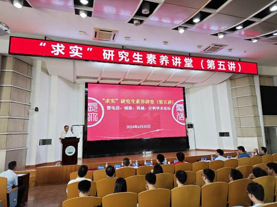6月25日下午,在东校区12教405报告厅,公司“求实”研究生素养讲堂第五场开讲。美国休斯敦大学机械工程系教授宋钢兵、电气与计算机工程系副教授陈杰夫受邀做学术报告,来自电信、计科、机械及城建公司的300余名师生现场聆听。报告会由电信公司经理罗明璋主持,公司党委副书记杜国锋致欢迎辞,研究生院领导关辉部长出席会议。