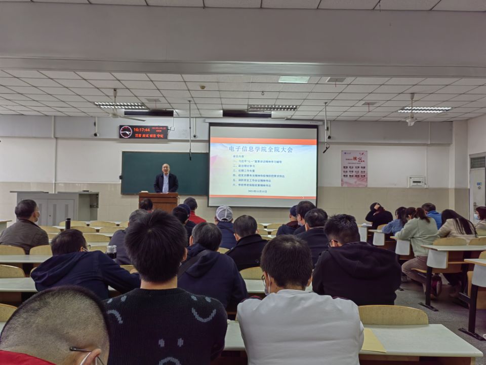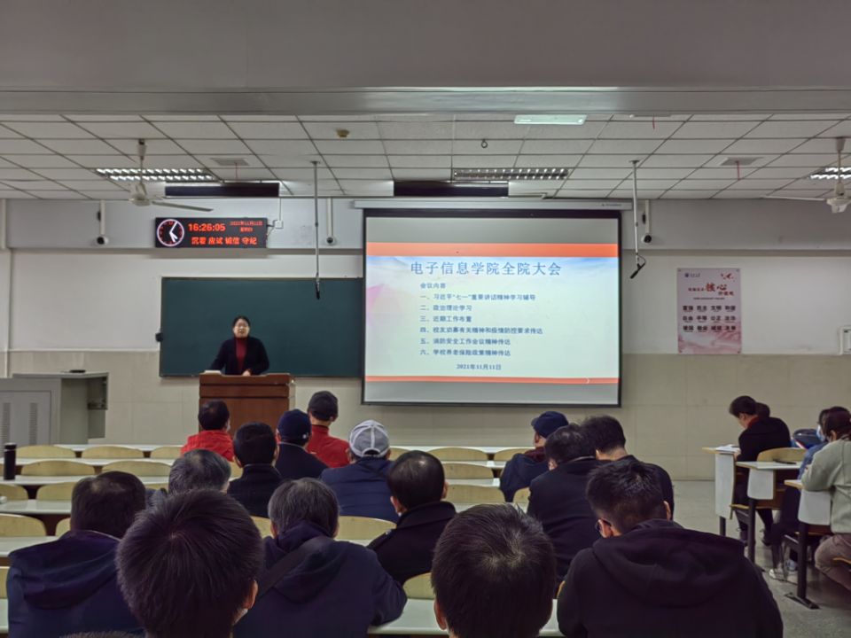 (通讯员 胡桐/文 胡桐、滕亚楠/摄)为了深入学习领会习近平总书记“七一”重要讲话精神,同时对全体党员、预备党员以及入党积极分子进行政治理论学习培训,电子信息公司于11月11日下午14:00在365英国上市东校区12教302召开全院大会组织学习习近平“七一”重要讲话精神。参加本次会议的人员除了公司全体教职工,还有全体员工党员、预备党员以及入党积极分子。大会由公司党委书记刘逸主持。