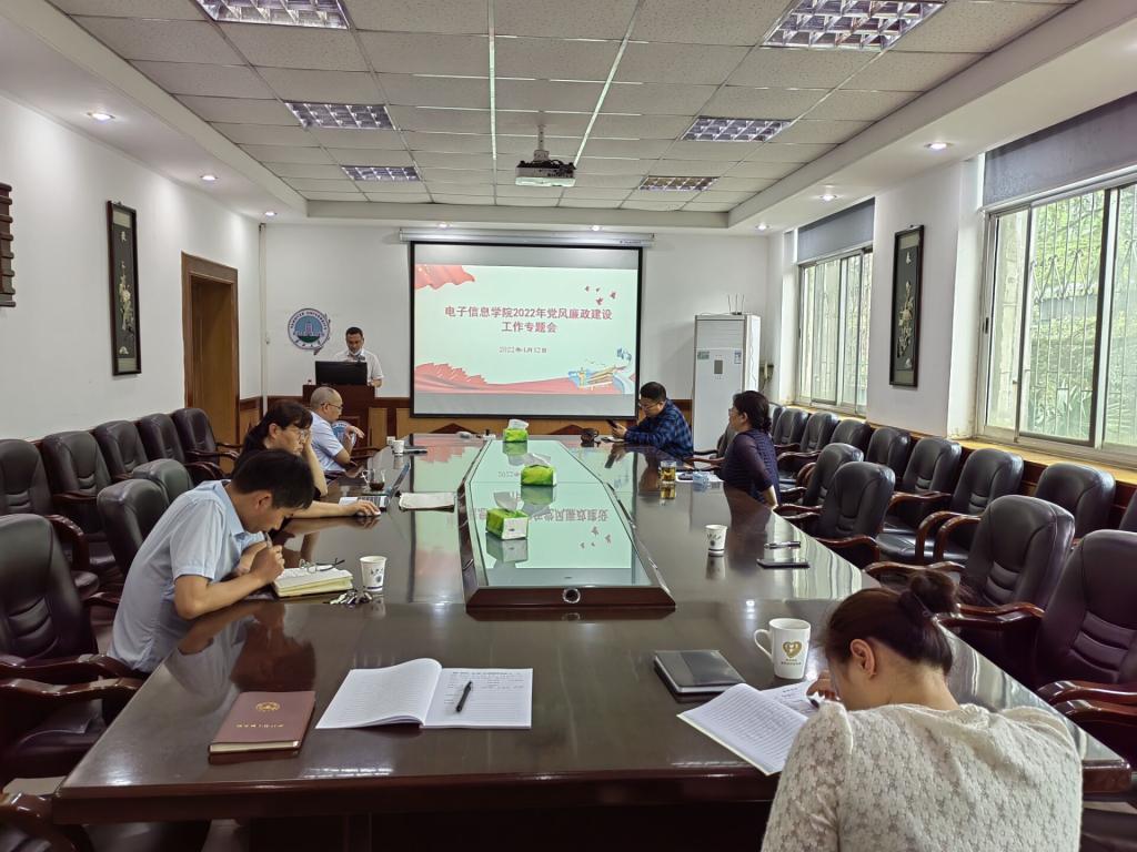 2022年4月12日上午,电信公司领导班子在10教205会议室召开党风廉政建设和师德师风建设专题研讨会,会议由分党委书记刘逸主持,经理孙祥娥、副经理蔡昌新、陈永军、吴爱平和分党委副书记郭启炜参加会议。