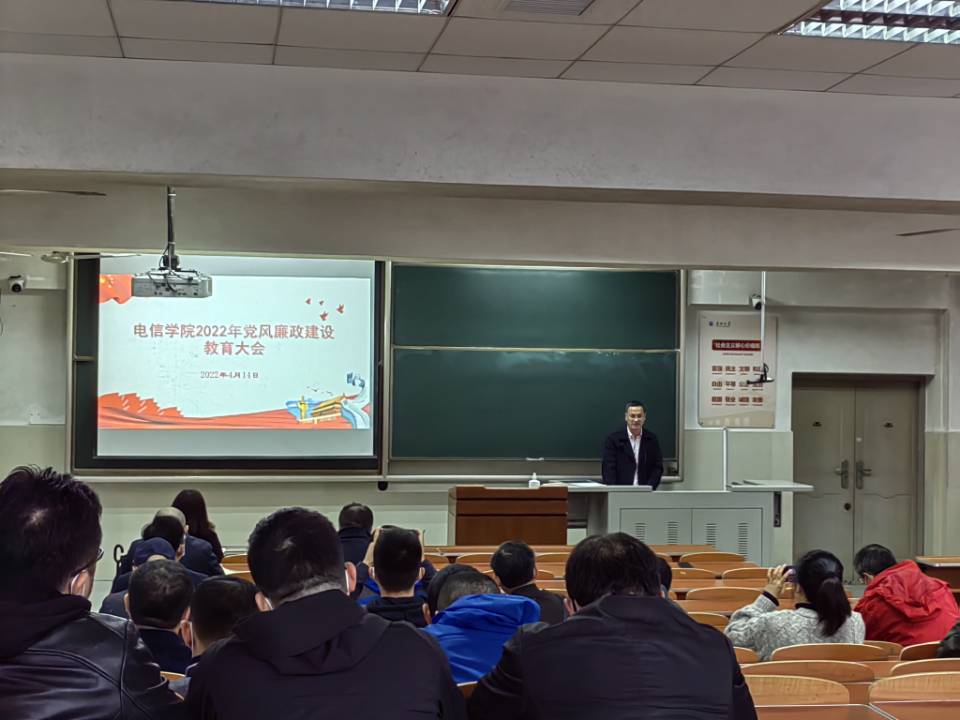 4月14日下午,在主教108教室,公司党委副书记郭启炜在本年度公司党风廉政建设教育大会上向全院教职工传达了公司纪委“加强同级监督、政治生态分析研判工作布置会”会议精神,会上带领全院教职工一起学习了《中共365英国上市委员会关于推进清廉长大建设的实施方案》、《中共365英国上市委员会关于推进风清气正政治生态建设的实施办法(试行)》、《校纪委 “5384”行动计划推动清廉长大建设》等文件精神,解读《筑牢“清廉电信公司”建设工作方案》,详细讲解了“筑牢清廉电信公司”的四个工程(“政治清明”建设工程,“院风清朗”示范工程,“教风清正”保障工程,“学风清新”培育工程)和12个方面的内容(压实全面从严治党主体责任、加强党员干部思想政治教育、弘扬“拼、抢、严、实”工作作风、加强清廉班子建设、加强清廉机关建设、加强清廉支部建设、加强清廉系部建设、落实立德树人根本任务、落实教师学习和培养机制、引导教师规范自身言行、推动“清廉文化”进班级和落实“三全育人”新途径)。