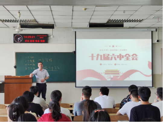(通讯员 夏子阳)5月5日下午,电信公司在12教202举行学习贯彻党的十九届六中全会精神专题报告会。报告会由院分党委副书记郭启炜主讲,全体员工党员参加。