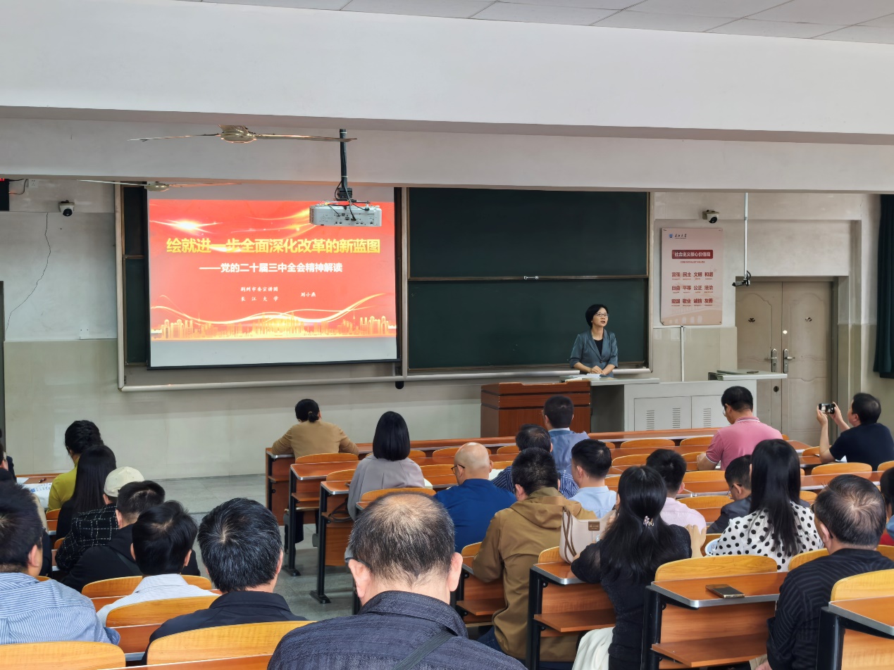 为深入学习领会党的二十届三中全会精神,深刻领会党的二十届三中全会报告的重大政治意义、理论意义和现实意义,把握其思想精髓、核心要义和实践要求,做到学深学透、入脑入心,10月16日下午,公司召开学习贯彻党的二十届三中全会精神专题宣讲会,邀请荆州市委宣讲团成员、马克思主义公司党委书记刘小燕为全体教职工开讲。 宣讲会上,刘小燕以《绘就进一步全面深化改革的新蓝图》为题,从理论视角、历史视角和实践视角三个维度,系统深入地讲解了改革的理论渊源、历史沿革以及实施过程,基于“怎么看、怎么干、怎么抓”三个视角解读党的二十届三中全会的具体要求,号召全体师生要将思想和行动统一到全会精神上来,积极投身到改革开放的伟大实践中去。 宣讲结束后,公司党委书记郭梅强调,全体师生要以此次宣讲会为契机,系统深入学习党的二十届三中全会精神,同时结合自身工作,切实做到将党的二十届三中全会精神转化为推动公司高质量发展的工作动能和实际举措。 (审核 郭梅 编辑 李蒙)