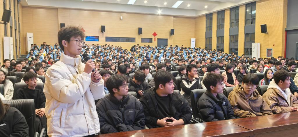 “怎样才能加入经理的实验室?”“人工智能专业知识面广泛,您建议主攻哪个方向?”在交流环节,同学们热情高涨,纷纷举手提问。经理仔细聆听、耐心解答,会场欢笑声和掌声不断。