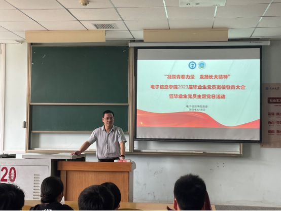 为深入推进学习贯彻习近平新时代中国特色社会主义思想主题教育,引导广大党员坚持以习近平新时代中国特色社会主义思想为指导,深入学习贯彻落实党的二十大精神,加强毕业生党员的理想信念教育、爱国爱校教育,激发毕业生党员的使命担当,68日下午,电子信息公司在13C220组织毕业生党员开展以“凝聚青春力量 发扬长大精神”为主题的离校教育大会暨主题党日活动。公司党委副书记郭启炜、党建秘书李蒙、在校毕业生党员参加会议。