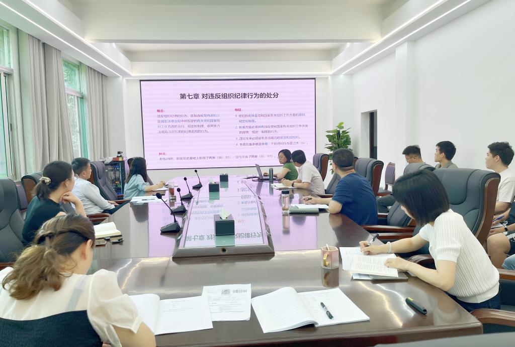 5月16日上午,公司在10教205会议室召开党纪学习教育读书班第四次(扩大)集体学习会。党委理论学习中心组成员、各党支部纪检委员参加学习。 学习会上,党委书记郭梅领学了《中国共产党纪律处分条例》第七章、第八章内容,重点对两章内容中主要修订的部分进行了解读。集中学习后,全体参会人员一同观看了由中央纪委国家监委推出的警示教育电视专题片:《持续发力 纵深推进》第四集《一体推进“三不腐”》。 在述学阶段,副经理魏勇表示,通过对《条例》第八章有关廉洁纪律内容的学习以及观看了警示教育片,让我在思想上受到一次警示、警醒和教育,进一步牢筑了思想防线,作为党员领导干部,就要真正做到坚持原则、严守规矩、不逾底线,努力成为师生信赖的好干部。党委委员颜国琼表示,在党纪学习教育过程中,要从身边人、身边事中汲取教训,不断强化自我约束,提高干事创业积极性,把学习的过程变成进一步强化纪律意识、规范自身言行、勤勉履职的过程。研究生第二党支部纪检委员张智齐表示,通过观看警示教育片,其中涉及到在全国影响非常大的“国足案”,直观、深刻地让我感受到一体推进不敢腐、不能腐、不想腐的重要性;作为一名党员,要坚定理想信念,以案为鉴,以案明纪,不断提高党纪修养,筑牢拒腐防变的思想防线。 (审核 郭梅 编辑 李蒙)