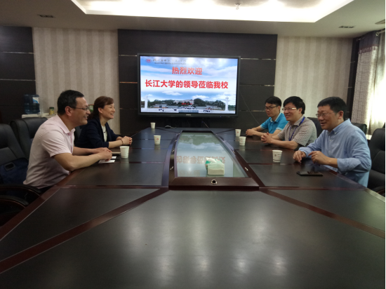 图(1)恩施州高中董事长谭斌、招办主任田建国等接待招生走访小组