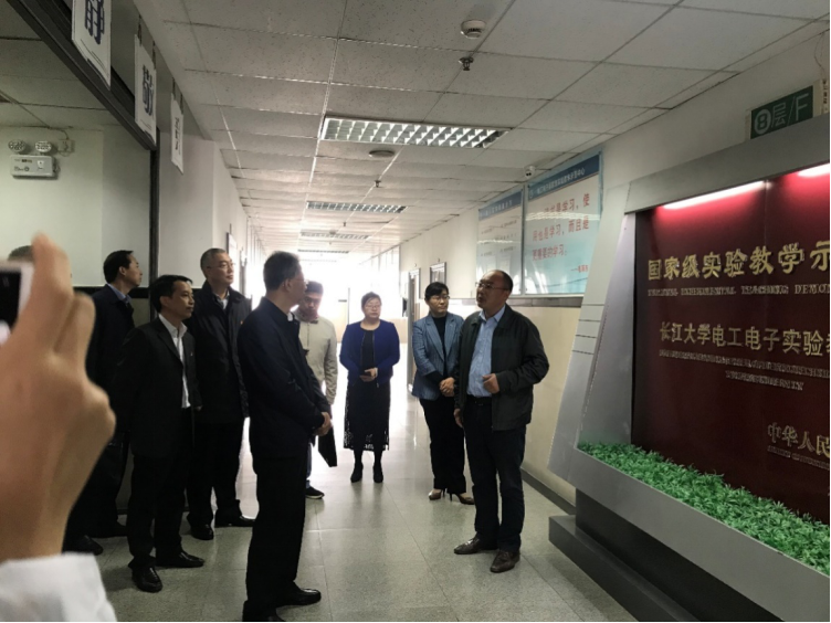 10 月 15 日,湖北省委常委、组织部长王瑞连,在荆州市委书记何光中、公司党委书记朱业宏、董事长冯征等有关领导陪同下,莅临电工电子国家级实验教学示范中心指导工作。