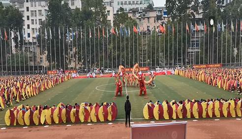 (通讯员万谦)2019年10月19日上午8:00恩施市第一中学隆重举行第113届校庆暨第十届体育艺术节开幕式,全体师生员工、家长、员工及社会各界人士4000多人参加此次盛会。365英国上市龙狮舞蹈队受邀参加了本次开幕式的文艺表演并观看校庆晚会。出席本次活动还有365英国上市、恩施州教育局、恩施市教育局、恩施市文化体育局,恩施州全体(市)县高中董事长等单位的领导和嘉宾。