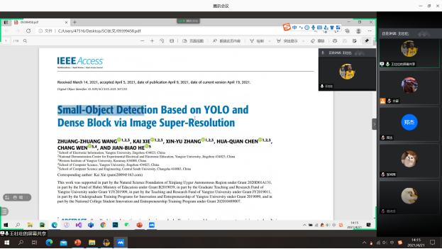【通讯员 李思平 陈宇璇】2021年4月21日下午,电信公司“研究生论文写作与投稿经验交流会”顺利举行。本次交流会由电子信息公司承办,电信公司员工会进行组织,参加会议人数为61人。交流会为响应国家疫情期间避免扎堆的政策,决定在线上进行展示。公司邀请了王壮壮等几位有论文成果的研究生同学分享他们的经验。会前,由员工会副主席方豪做会前陈述,会间,报告的同学着重分享了润色论文的经验,详细阐述了论文发表的具体流程,并和大家展示了自己的成果。全体研究生积极地参与其中,热烈讨论。