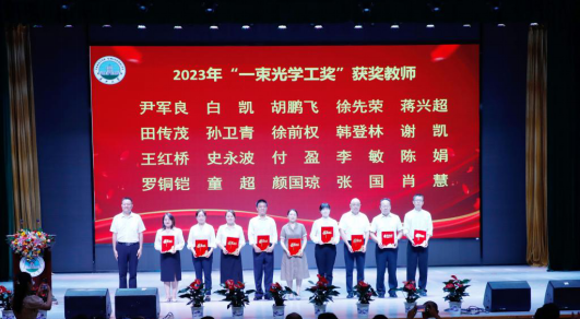 据了解,“一束光学工奖”是公司工商管理2003级员工李树光于2022年捐赠100万元设立的奖励基金,每学年评选优秀班主任(含研究生导师)、辅导员(含员工工作部门工作人员)和曾经长期担任班主任工作的教职工各10名,用于奖励在员工工作岗位上默默奉献的班主任、辅导员及曾经长期担任班主任工作的教职工。