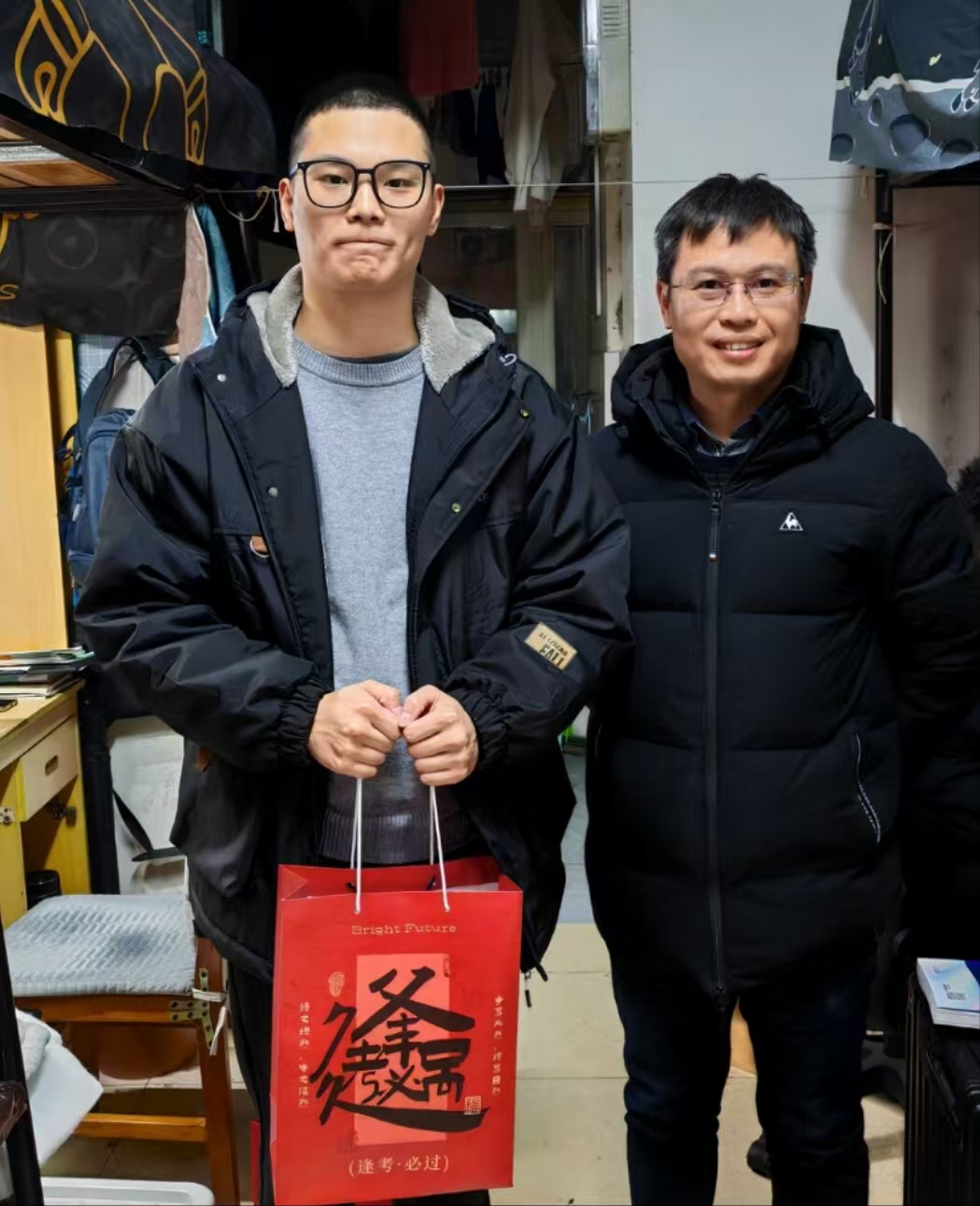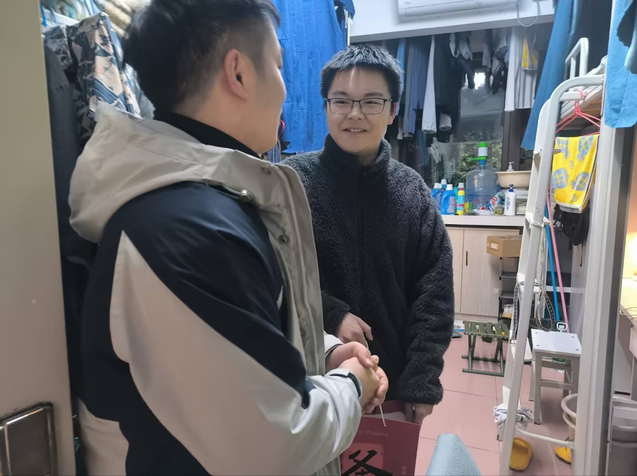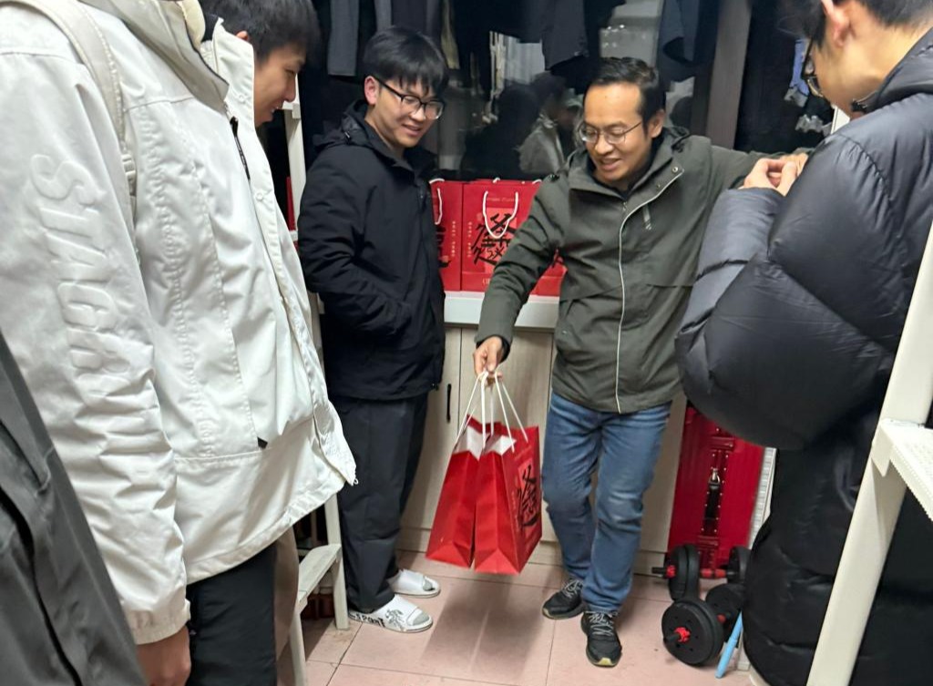 12月16日至17日,公司领导、年级辅导员和班主任走访考研员工寝室带着满满的关怀与祝福,将这份充满爱与祝福的“考研大礼包”亲手送到每一位考研学子的手中。
