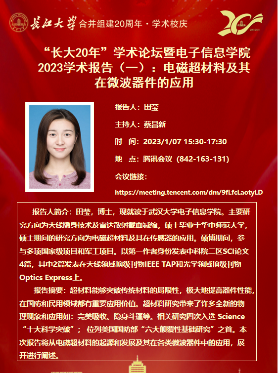 “长大20年”学术论坛暨电子信息公司2023学术报告(一)