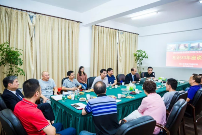 座谈会上,员工们畅所欲言,讲述自己的人生经历,他们有的成为了企业家,有的成为了技术工,无论是哪个行业,他们都对母校充满了赶集,对母校如今的发展变化感到由衷地高兴。刘国权在致谢师辞时深切地说道:“感谢公司给我们提供了一个良好的学习环境,感谢老师们的辛勤栽培,感谢同学们之间的互帮互助。”“如今公司的食堂、实验室以及其他基础设施建设与以前相比提高太多了,真是羡慕啊。”黄庆员工说“希望公司能继续培养独当一面的人才,为母院、母校、祖国的建设添砖加瓦”。翁惠辉作为教师代表,就电信公司国家级电工电子实验教学示范中心向同学们作了进一步介绍,并与员工贺荣商定毕业生去公司实习的问题。翁教授感慨道:“当年我二十多岁当你们班主任,你们那时刚二十出头,二十岁与二十六岁感觉相差很多,但是九十多岁的老头子和一百多岁的老头子可没什么差别了。”此话一出,引起在座员工们会心大笑,纷纷畅想着相识40年、50年后的聚会,彼此约定以后常见面、常回母校。